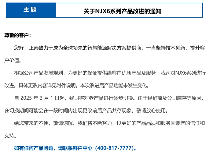 關于NJX6系列產(chǎn)品改進的通知