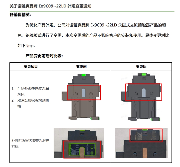 關(guān)于諾雅克品牌 Ex9C09~22LD 外觀變更通知