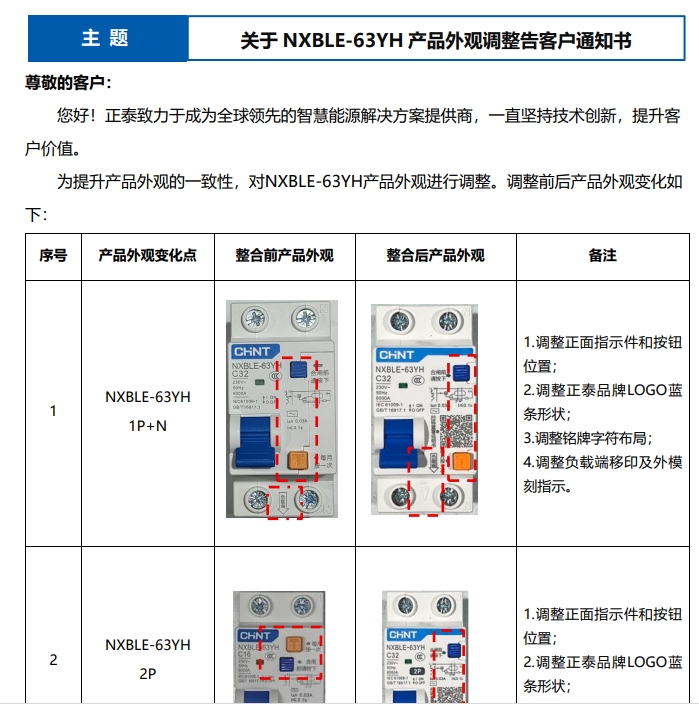關(guān)于 NXBLE-63YH 產(chǎn)品外觀調(diào)整告客戶通知書