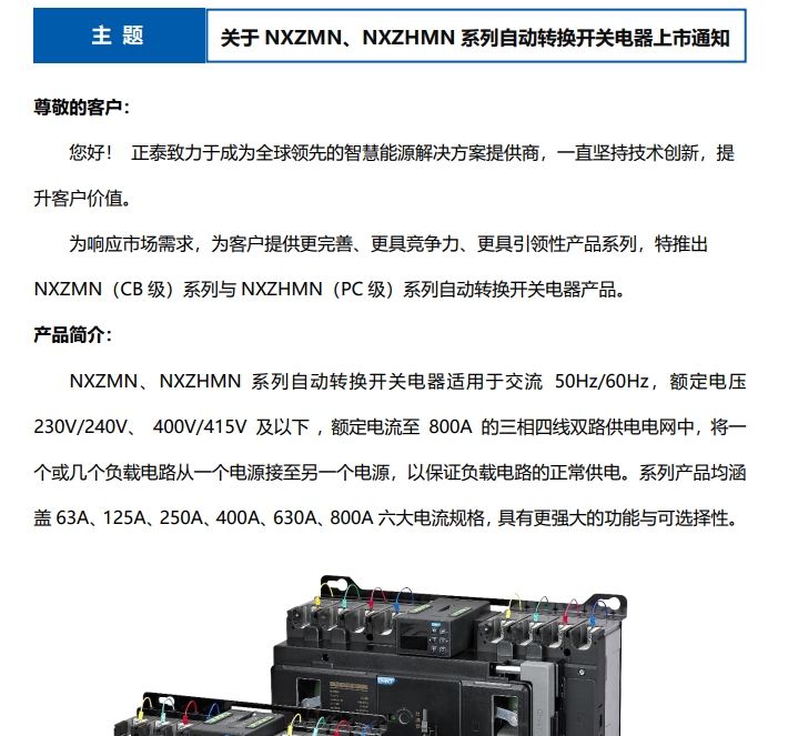 關(guān)于 NXZMN、NXZHMN 系列自動(dòng)轉(zhuǎn)換開關(guān)電器上市通知