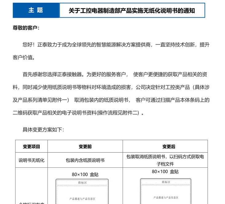 關(guān)于工控電器制造部產(chǎn)品實(shí)施無(wú)紙化說(shuō)明書(shū)的通知