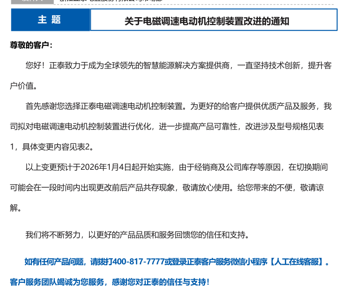 關(guān)于電磁調(diào)速電動(dòng)機(jī)控制裝置改進(jìn)的通知