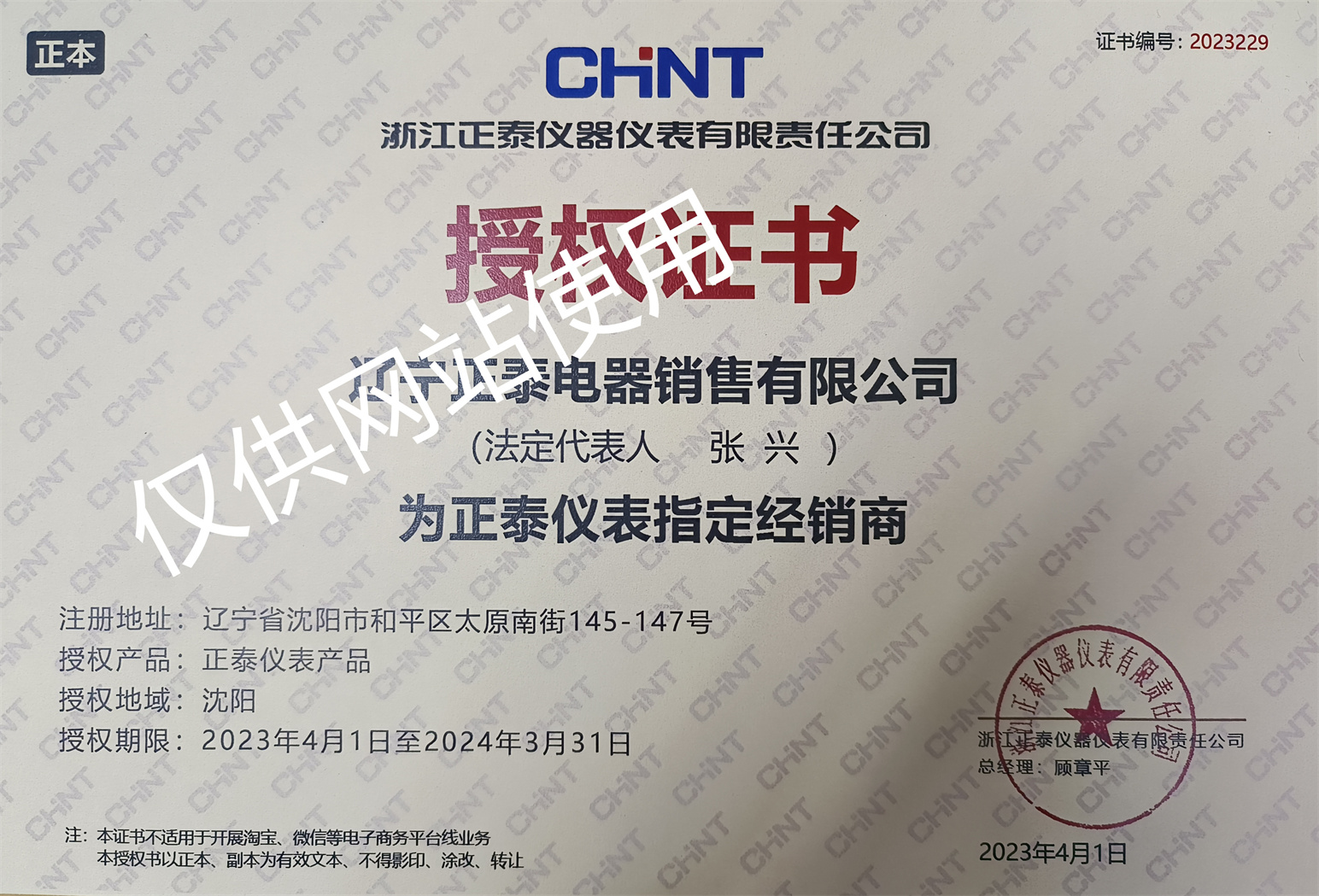 浙江正泰儀器儀表有限責(zé)任公司授權(quán)書