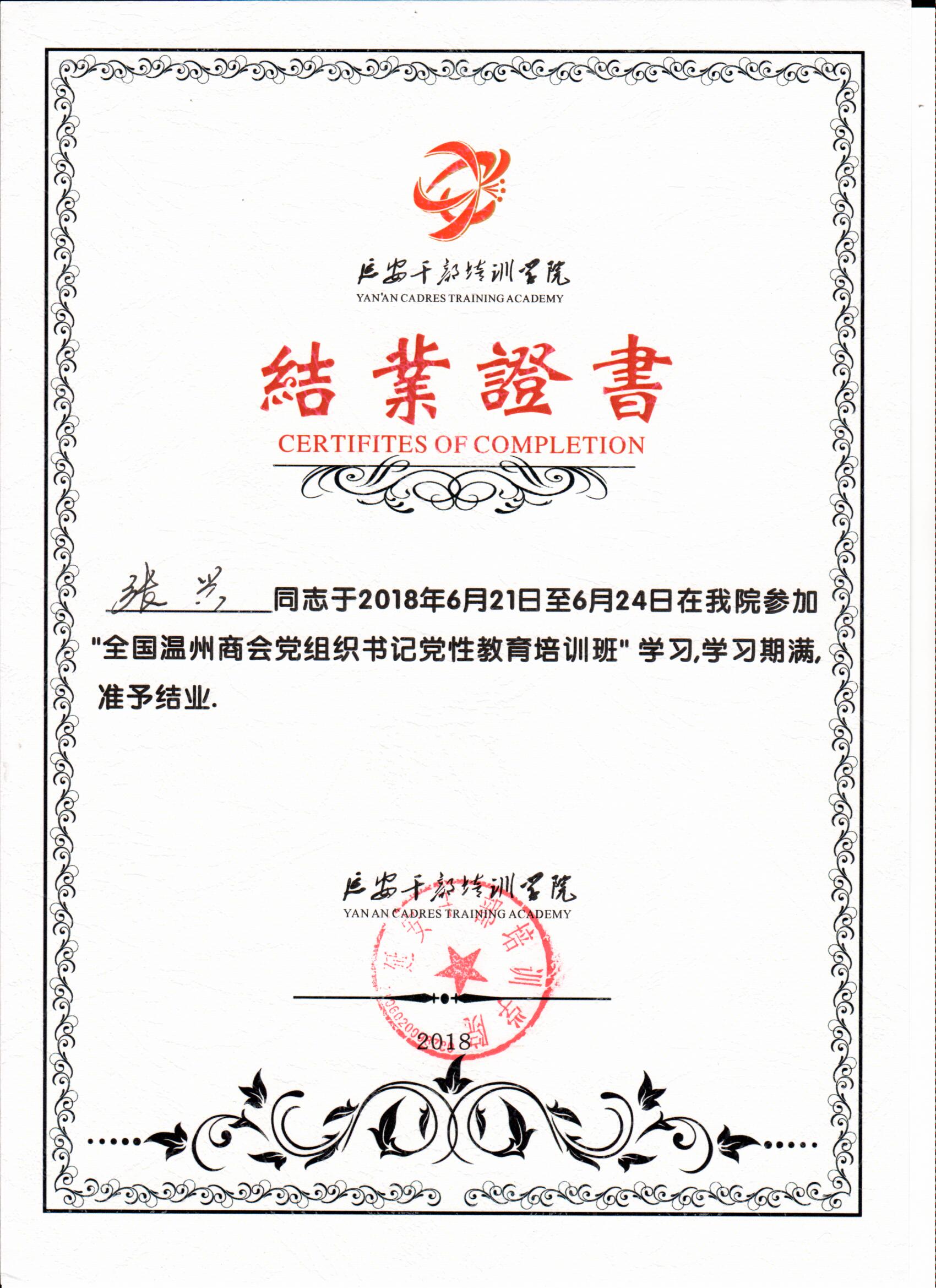 延安干部培訓(xùn)學(xué)員結(jié)業(yè)證書